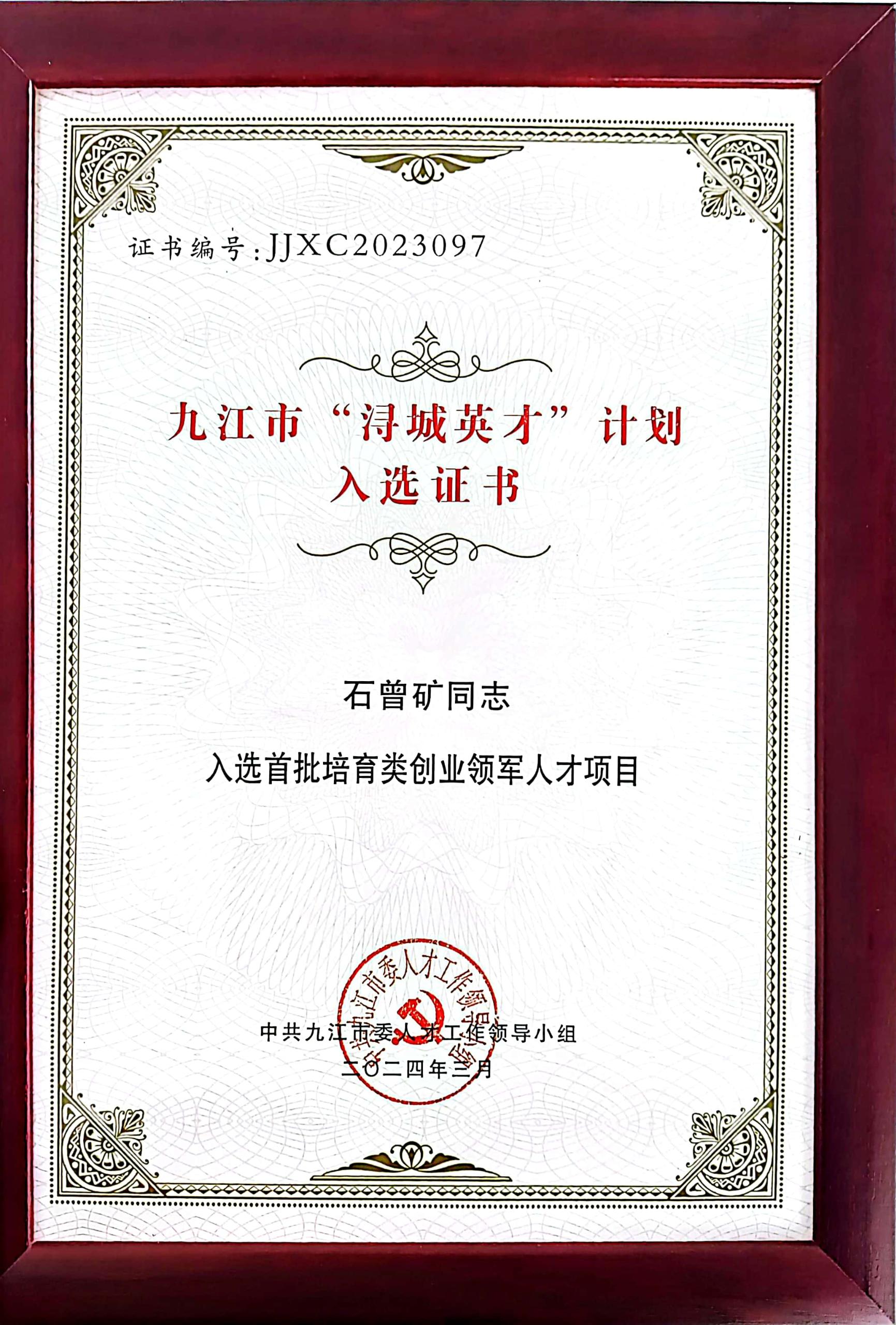 回首2024年,石曾礦先生成績(jī)斐然。先是以卓越才能與突出行業(yè)貢獻(xiàn),入選九江市 “潯城英才” 計(jì)劃首批培育類創(chuàng)業(yè)領(lǐng)軍人才項(xiàng)目,如今入選 “贛鄱英才計(jì)劃”,更是邁向新高度,實(shí)現(xiàn)了個(gè)人榮譽(yù)的進(jìn)階。